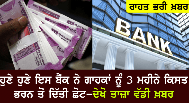 ਇਸ ਬੈਂਕ ਨੇ ਗਾਹਕਾਂ ਨੂੰ 3 ਮਹੀਨੇ ਕਿਸਤ ਭਰਨ ਤੋਂ ਦਿੱਤੀ ਛੋਟ