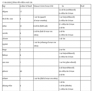 ਚੰਡੀਗੜ੍ਹ, 4 ਜੂਨ 2020 – ਪੰਜਾਬ ‘ਚ ਬੁੱਧਵਾਰ ਨੂੰ ਕੋਰੋਨਾ ਦੇ 126 ਕੇਸ ਸਾਹਮਣੇ ਆਏ ਹਨ ਜਿਸ ਕਾਰਨ ਐਕਟਿਵ ਮਰੀਜ਼ਾਂ ਦੀ ਗਿਣਤੀ 881 ਹੋ ਗਈ ਹੈ। ਜਦੋਂ ਕਿ ਸੂਬੇ ‘ਚ ਕੁੱਲ ਮਰੀਜ਼ਾਂ ਦੀ ਗਿਣਤੀ 3497 ਹੋ ਗਈ ਹੈ ਜਦੋਂ ਕਿ 2538 ਮਰੀਜ਼ ਠੀਕ ਹੋ ਕੇ ਘਰਾਂ ਨੂੰ ਪਰਤ ਚੁੱਕੇ ਹਨ ਜਦੋਂ ਕਿ ਅੱਜ 6 ਮੌਤਾਂ ਵੀ ਹੋਈਆਂ ਹਨ, ਪੜ੍ਹੋ ਪੂਰੀ ਰਿਪੋਰਟ…