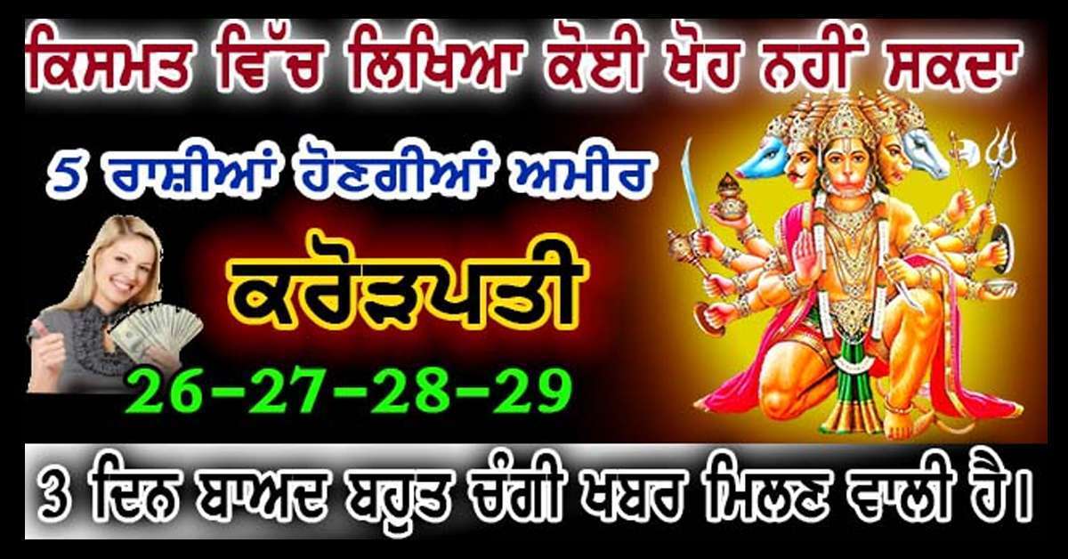 Bajrangbali-ਇਹ 5 ਰਾਸ਼ੀਆਂ ਹੋਣਗੀਆਂ ਅਮੀਰ,ਤੁਹਾਨੂੰ ਵਰਦਾਨ,ਧਨ ਦੋਲਤ ਤੋ ਲੈਕੇ ਸਾਰਾਕੁੱਝ ਮਿਲੇਗਾ