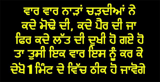 ਸਾਡਾ ਮਕਸਦ ਹੈਹਰ ਕੋਈ ਤੰਦਰੁਸਤ ਅਤੇ ਅਰੋਗ ਰਹੇ | ਜੋ ਅਸੀਂ ਅੱਜ ਨੁਸਖਾ ਸ਼ੇਅਰ ਕੀਤਾ ਹੈਉਮੀਦ ਹੈ ਤੁਹਾਨੂੰ ਜਰੂਰ ਪਸੰਦ ਆਵੇਗਾ |ਇਲਾਵਾਂ ਤੁਹਾਡੀ ਸਿਹਤ ਨੂੰ ਠੀਕ ਰੱਖਣ ਲਈ ਅਸੀਂ ਕਸਰਤ ਅਤੇ ਯੋਗਾ ਨਾਲ ਸਬੰਧਿਤ ਲਾਹੇਵੰਦ ਜਾਣਕਾਰੀ ਵੀ ਸ਼ੇਅਰ ਕਰਦੇ ਹਾਂ,ਸੋ ਕਿਰਪਾ ਕਰਕੇ ਆਪਣੀ ਸਿਹਤ ਨੂੰ ਤੰਦਰੁਸਤ ਬਣਾਉਣ ਲਈ ਅਤੇ ਬਿਮਾਰੀਆਂ ਤੋਂ ਦੂਰ ਰਹਿਣ ਲਈ ਰੋਜ਼ਾਨਾਂ ਕਸਰਤ ਅਤੇ ਯੋਗਾ ਜ੍ਰੂਰਰ ਕਰੋ,ਕਸਰਤ ਅਤੇ ਯੋਗਾ ਸਰੀਰਕ ਅਤੇ ਮਾਨਸਿਕ ਦੋਵਾਂ ਲਈ ਬਹੁਤ ਹੀ ਲਾਹੇਵੰਦ ਹੈ,ਰੋਜ਼ਾਨਾਂ ਦਿਨ ਦੀ ਸ਼ੁਰੁਆਤ ਕਸਰਤ ਨਾਲ ਕਰੋਗਾ ਤਾਂ ਸਾਰਾ ਦਿਨ ਮਾਨਸਿਕ ਸੰਤੁਸ਼ਟੀ ਮਿਲੇਗੀ ਅਤੇ ਤੁਹਾਡੀ ਸਿਹਤ ਵੀ ਅਰੋਗ ਰਹੇਗੀ |ਸਾਡੇ ਦੁਆਰਾ ਦਿੱਤੀ ਗਈ ਜਾਣਕਾਰੀ ਅਖ਼ਬਾਰ,ਨਿਊਜ ਚੈਨਲ,ਯੂ-ਟਿਊਬ ਆਦਿ ਤੋਂ ਲਈ ਜਾਂਦੀ ਹੈ ਤੇ ਤੁਹਾਡੇ ਤੱਕ ਪਹੁੰਚਾਈ ਜਾਂਦੀ ਹੈ ਤਾਂ ਜੋ ਤੁਹਾਨੂੰ ਸਾਡੇ ਦੁਆਰਾ ਦਿੱਤੀ ਗਈ ਜਾਣਕਾਰੀ ਦਾ ਵੱਧ ਤੋਂ ਵੱਧ ਫਾਇਦਾ ਹੋ