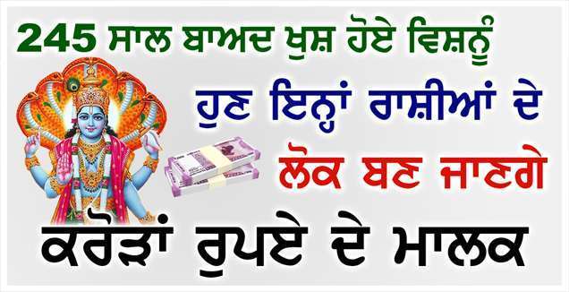 245 ਸਾਲ ਬਾਅਦ ਖੁਸ਼ ਹੋਏ ਭਗਵਾਨ ਵਿਸ਼ਨੂੰ ਹੁਣ ਇਨ੍ਹਾਂ ਰਾਸ਼ੀਆਂ ਦੇ ਲੋਕ ਬਣ ਜਾਣਗੇ ਕਰੋੜਾਂ ਰੁਪਏ ਦੇ ਮਾਲਕ