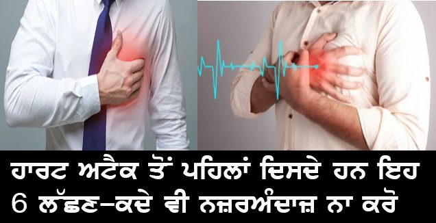 ਕੀ ਤੁਸੀਂ ਜਾਣਦੇ ਹੋ ਕਿ ਦਿਲ ਦਾ ਦੌ-ਰਾ ਪੈਣ ਤੋਂ ਪਹਿਲਾਂ ਤੁਹਾਡਾ ਸਰੀਰ ਤੁਹਾਨੂੰ ਕਈ ਸਿ-ਗ-ਨ-ਲ ਦਿੰਦਾ ਹੈ? ਤਾਂ ਆਓ ਜਾਣਦੇ ਹਾਂ ਕਿਹੜੇ 6 ਅਜਿਹੇ ਸੰ-ਕੇ-ਤ ਹਨ ਜਿਨ੍ਹਾਂ ਨੂੰ ਤੁਹਾਨੂੰ ਕਦੇ ਵੀ ਨ-ਜ਼-ਰ-ਅੰ-ਦਾ-ਜ਼ ਨਹੀਂ ਕਰਨਾ ਚਾਹੀਦਾ।ਦਿਲ ਨੂੰ ਫਿੱ-ਟ ਰੱਖਣਾ ਬਹੁਤ ਜ਼ਰੂਰੀ ਹੈ। ਕਿਉਂਕਿ ਜੇਕਰ ਇਹ ਅ-ਣ-ਉ-ਚਿ-ਤ ਹੈ ਤਾਂ ਤੁਸੀਂ ਆਪਣੀ ਬਾਕੀ ਦੀ ਜ਼ਿੰਦਗੀ ਲਈ ਨ-ਸ਼ਿ-ਆਂ ‘ਤੇ ਨਿਰਭਰ ਰਹੋਗੇ। ਅਜਿਹੀ ਸਥਿਤੀ ਵਿੱਚ ਬਦਲਦੀ ਜੀਵਨ ਸ਼ੈ-ਲੀ ਵਿੱਚ