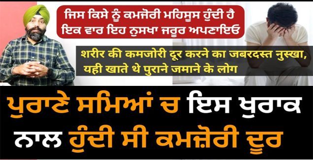 ਵੀਡੀਓ ਥੱਲੇ ਜਾ ਕੇ ਦੇਖੋ,ਪੁਰਾਣੇ ਵੈਦ ਇਹ ਨੁਕਤਾ ਦਿੰਦੇ ਸੀ,ਅੱਜ-ਕੱਲ੍ਹ ਲੋਕਾਂ ਦੀਆਂ ਖਾਣ-ਪੀਣ ਦੀਆਂ ਆਦਤਾਂ ਬਹੁਤ ਗਲਤ ਹੋ ਗਈਆਂ ਹਨ ਜਿਸਦੇ ਘਰ ਨੂੰ ਰੋਗਾਂ ਦੇ ਵਿਚ ਘਿਰਦੇ ਜਾ ਰਹੇ ਹਨ ਅਤੇ ਨਵੀਆਂ ਨਵੀਆਂ ਬਿਮਾਰੀਆਂ ਦਾ ਸਾਹਮਣਾ ਕਰਨਾ ਪੈ ਰਿਹਾ ਹੈ। ਅੱਜ ਕੱਲ੍ਹ ਲੋਕ ਨਾ ਤਾਂ ਕਸਰਤ ਕਰਦੇ ਹਨ ਨਾ ਹੀ ਸੈਰ ਕਰਦੇ ਹਨ। ਅਤੇ ਸੰਤੁਲਿਤ ਭੋਜਨ ਦਾ ਸੇਵਨ ਘੱਟ ਕਰਦੇ ਹਨ ਬਾਹਰ ਦੀਆਂ ਚੀਜ਼ਾਂ ਦਾ ਸੇਵਨ ਵਧੇਰੇ ਕਰਦੇ ਹਨ।ਮ-ਰ-ਦਾ-ਨਾ ਕਮਜੋਰੀ ਆ ਜਾਂਦੀ ਹੈ ਅਤੇ ਸਰਦੀਆਂ ਦੇ ਵੀ ਤੁਸੀਂ ਆਪਣੀ ਮ-ਰ-ਦਾ-ਨਾ ਕਮਜੋਰੀ ਨੂੰ ਕਿਵੇਂ ਦੂਰ ਕਰ ਸਕਦੇ ਹੋ।