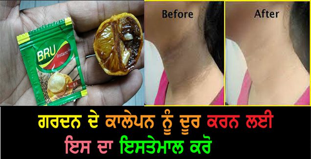 ਤੁਸੀਂ ਇਕ ਕੌਫੀ ਦਾ ਛੋਟਾ ਪੈਕਟ ਲੈ ਕੇ ਆਉਣਾ ਹੈ, ਹੁਣ ਤੁਸੀਂ ਏਸ ਕੌਫੀ ਵਿੱਚ ਥੋੜ੍ਹੀਆਂ ਜਿਹੀਆਂ ਬੂੰ-ਦਾਂ ਨਿੰਬੂ ਦੀਆਂ ਮਿਲਾ ਦੇਣੀਆਂ ਹਨ,ਅਤੇ ਫਿਰ ਉਸੇ ਨਿੰਬੂ ਨੂੰ ਕੋਫੀ ਨੂੰ ਲਗਾ ਕੇ ਆਪਣੀ ਗਰਦਨ ਦੇ ਹਲਕੇ ਹੱਥਾਂ ਨਾਲ ਇਸ ਦੀ ਮਾਲਸ਼ ਕਰਨੀ ਐਂ,ਇਸ ਤਰ੍ਹਾਂ ਤੁਸੀਂ ਪੰਜ ਮਿੰਟ ਤੱਕ ਕਰਦੇ ਰਹਿਣਾ ਹੈ, ਉਸ ਤੋਂ ਬਾਅਦ ਉਸ ਨੇ ਇਸ ਨੂੰ 20 ਮਿੰਟ ਲਈ ਸੁੱਕਣ ਦੇਣਾ ਹੈ ਤੇ ਉਸ ਤੋਂ ਬਾਅਦ ਤੁਸੀਂ ਆਪਣੀ ਗਰਦਨ ਨੂੰ ਪਾਣੀ ਨਾਲ ਧੋ ਲਓ, ਇਸ ਨਾਲ ਤੁਹਾਡੀ ਗਰਦਨ ਦਾ