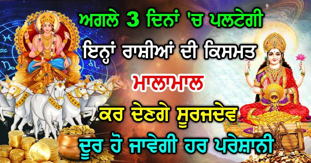 ਜੋਤਿਸ਼ ਸ਼ਾਸਤਰ ਦੇ ਅਨੁਸਾਰ ਗ੍ਰਹਿਆਂ ਦੀ ਤਬਦੀਲੀ ਦਾ ਸਾਡੇ ਜੀਵਨ ‘ਤੇ ਡੂੰਘਾ ਪ੍ਰਭਾਵ ਪੈਂਦਾ ਹੈ। ਗ੍ਰਹਿਆਂ ਦੀ ਰਾਸ਼ੀ ਬਦਲਣ ਨਾਲ ਸਾਰੀਆਂ 12 ਰਾਸ਼ੀਆਂ ‘ਤੇ ਸ਼ੁਭ ਜਾਂ ਅਸ਼ੁੱਭ ਪ੍ਰਭਾਵ ਪੈਂਦਾ ਹੈ। 15 ਮਈ ਨੂੰ ਵੀ ਸੂਰਜ ਦੇਵਤਾ ਕੈਂਸਰ ਵਿੱਚ ਪ੍ਰਵੇਸ਼ ਕਰ ਰਿਹਾ ਹੈ। ਅਜਿਹੀ ਸਥਿਤੀ ਵਿੱਚ 3 ਵਿਸ਼ੇਸ਼ ਰਾਸ਼ੀਆਂ ਨੂੰ ਇਸ ਸੰਕਰਮਣ ਦਾ ਵੱਡਾ ਲਾਭ ਮਿਲਣ ਵਾਲਾ ਹੈ। ਉਸ ਦੀ ਕੁੰਡਲੀ ਵਿੱਚ ਧਨ ਰਾਜ ਯੋਗ ਬਣਨ ਵਾਲਾ ਹੈ। ਤਾਂ ਆਓ ਜਾਣਦੇ ਹਾਂ ਇਹ ਖੁਸ਼ਕਿਸਮਤ ਰਾਸ਼ੀਆਂ ਕਿਹੜੀਆਂ ਹਨ।