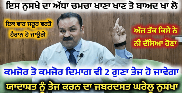ਯਾਦਸ਼ਕਤੀ ਵਧਾਉਣ ਲਈ ਦਿਮਾਗੀ ਤਾਕਤ ਨੂੰ ਵਧਾਉਣ ਲਈ ਤੁਸੀਂ ਇਸ ਨੁਕਤੇ ਦਾ ਇਸਤੇਮਾਲ ਕਰਨਾ ਹੈ ਇਸ ਤੇ ਇਸਤੇਮਾਲ ਕਰਨ ਨਾਲ ਤੁਹਾਡੀ ਯਾਦਦਾਸ਼ਤ ਸ਼ਕਤੀ ਵਧ ਜਾਵੇਗੀ ਕਈ ਵਾਰ ਆਪਾਂ ਕੋਈ ਚੀਜ਼ ਕਿਥੇ ਰੱਖ ਦੇਣ ਅਤੇ ਉਹ ਚੇਤਾ ਨਹੀਂ ਆਉਂਦੀ ਜਾਂ ਫਿਰ ਨਿੱਕੀਆਂ ਨਿੱਕੀਆਂ ਗੱਲਾਂ ਭੁੱਲ ਜਾਂਦੇ ਹਾਂ ਹੇ ਸਭ ਦੀ ਸਮੱਸਿਆ ਨੂੰ ਠੀਕ ਕਰਨ ਲਈ ਤੁਸੀਂ ਸਾਡੇ ਇਸ ਦੱਸੇ ਜਾਣ ਵਾਲੇ ਨੁਕਤੇ ਦਾ ਇਸਤੇਮਾਲ ਕਰਨਾ ਹੈ ਪਹਿਲਾ ਨੁਕਤਾ ਇਹ ਹੈ