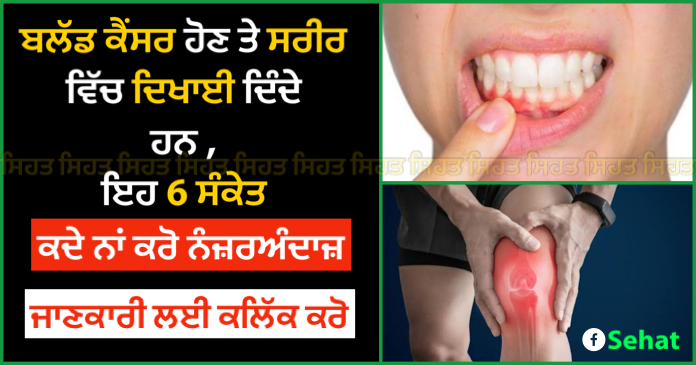 ਖੂਨ ਸਾਡੇ ਸਰੀਰ ਦੇ ਲਈ ਬਹੁਤ ਜ਼ਰੂਰ ਹੁੰਦਾ ਹੈ । ਇਹ ਤਾਂ ਸਾਰੇ ਜਾਣਦੇ ਹਨ , ਸਾਡੇ ਸਰੀਰ ਦੇ ਹਰ ਅੰਗ ਤਕ ਜ਼ਰੂਰੀ ਪੋਸ਼ਕ ਤੱਤ ਅਤੇ ਆਕਸੀਜਨ ਆਦਿ ਖ਼ੂਨ ਦੀ ਮਦਦ ਨਾਲ ਹੀ ਪਹੁੰਚਦੇ ਹਨ । ਜੇਕਰ ਕਿਸੇ ਵਿਅਕਤੀ ਦੇ ਖੂਨ ਵਿੱਚ ਕੋਈ ਬਿਮਾਰੀ ਹੋ ਜਾਵੇ , ਤਾਂ ਪ੍ਰੇਸ਼ਾਨੀ ਬਹੁਤ ਵੱਡੀ ਹੋ ਸਕਦੀ ਹੈ । ਬਲੱਡ ਕੈਂਸਰ ਇਕ ਬਹੁਤ ਹੀ ਗੰਭੀਰ ਰੋਗ ਹੈ । ਤੁਸੀਂ ਜਾਣਦੇ ਹੋ ਕਿ ਸਾਡਾ ਖੂਨ ਦੋ ਤਰ੍ਹਾਂ ਦੇ ਸੈੱਲਾ ਨਾਲ ਮਿਲ ਕੇ ਬਣਿਆ ਹੁੰਦਾ ਹੈ । ਜਿਨ੍ਹਾਂ ਨੂੰ ਰੈੱਡ ਬਲੱਡ ਸੈੱਲਸ ਅਤੇ ਵ੍ਹਾਈਟ ਬਲੱਡ ਸੈਲਜ਼ ਕਿਹਾ ਜਾਂਦਾ ਹੈ । ਸਾਡੇ ਸਰੀਰ ਵਿੱਚ ਪੂਰਾ ਖੂਨ ਹੋਣਾ ਬਹੁਤ ਜ਼ਰੂਰੀ ਹੈ । ਕਿਉਂਕਿ ਸਰੀਰ ਦੇ ਅੰਗਾਂ ਤੱਕ ਆਕਸੀਜਨ ਅਤੇ ਪੋਸ਼ਕ ਤੱਤ ਖੂਨ ਦੀ ਮਦਦ ਨਾਲ ਹੀ ਪਹੁੰਚਦੇ ਹਨ । ਬਲੱਡ ਕੈਂਸਰ ਦੀ ਸ਼ੁਰੂਆਤ ਬੋਨ ਮੈਰੋ ਨਾਲ ਹੁੰਦੀ ਹੈ । ਕਿਉਂਕਿ ਖੂਨ ਇਸਦੇ ਨਾਲ ਹੀ ਬਣਦਾ ਹੈ । ਬਲੱਡ ਕੈਂਸਰ ਕਈ ਤਰ੍ਹਾਂ ਦੇ ਹੋ ਸਕਦੇ ਹਨ । ਸ਼ੁਰੂਆਤੀ ਅਵਸਥਾ ਵਿੱਚ ਇਸ ਦੇ ਲੱਛਣ ਬਹੁਤ ਹੀ ਸਮਾਨਿਆ ਹੁੰਦੇ ਹਨ । ਜਿਨ੍ਹਾਂ ਨੂੰ ਲੋਕ ਅਕਸਰ ਨਜ਼ਰਅੰਦਾਜ਼ ਕਰ ਦਿੰਦੇ ਹਨ ।ਅੱਜ ਅਸੀਂ ਤੁਹਾਨੂੰ ਬਲੱਡ ਕੈਂਸਰ ਹੋਣ ਤੇ ਸਰੀਰ ਵਿੱਚ ਦਿਖਾਈ ਦੇਣ ਵਾਲੇ ਲੱਛਣਾਂ ਬਾਰੇ ਦੱਸਾਂਗੇ ।