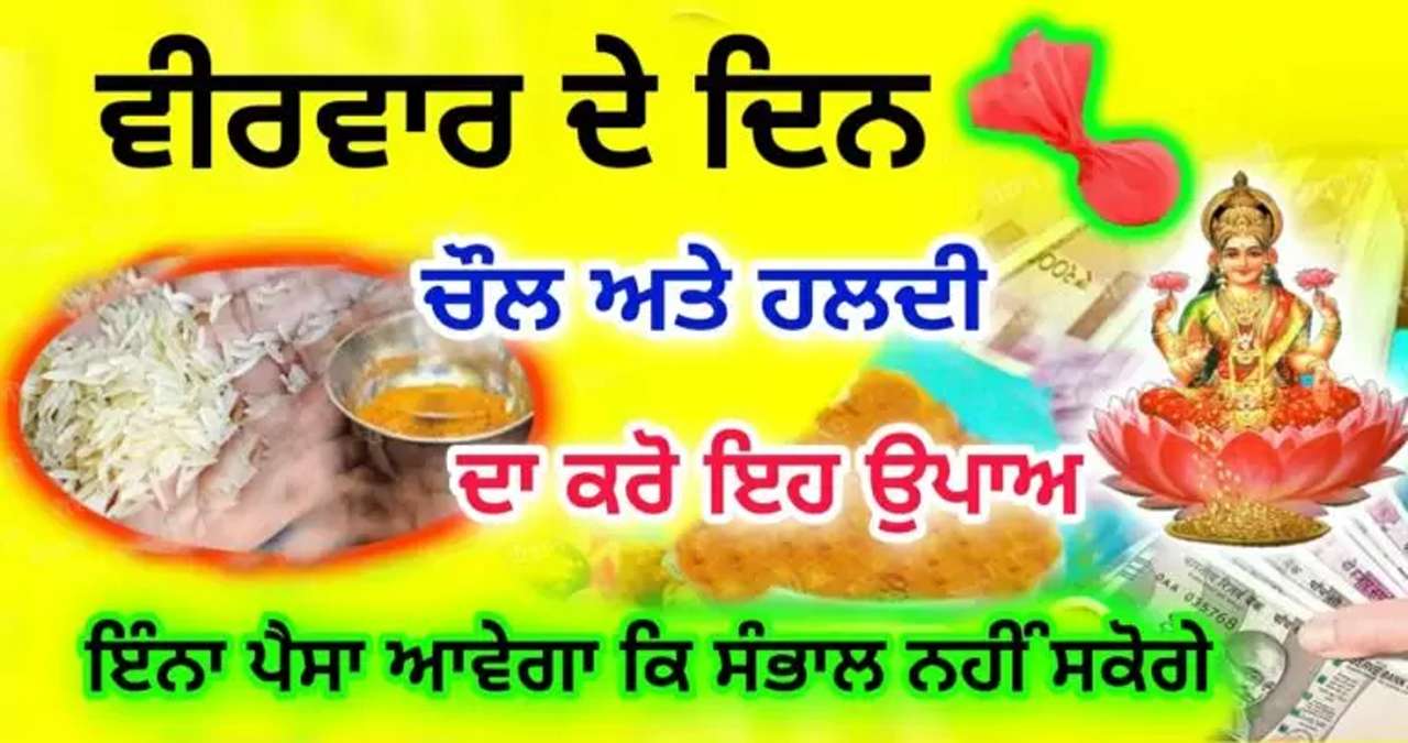 7. ਜੇਕਰ ਤੁਸੀਂ ਆਰਥਿਕ ਸਮੱਸਿਆਵਾਂ ਤੋਂ ਪਰੇਸ਼ਾਨ ਹੋ ਤਾਂ ਵੀਰਵਾਰ ਨੂੰ ਲਾਲ ਕੱਪੜੇ ‘ਚ ਹਲਦੀ ਦੀਆਂ ਪੰਜ ਗੰਢਾਂ ਬੰਨ੍ਹ ਲਓ। ਫਿਰ ਇਸ ਨੂੰ ਸੇਫ ਵਿਚ ਪਾ ਦਿਓ। ਅਜਿਹਾ ਕਰਨ ਨਾਲ ਤੁਹਾਨੂੰ ਦੇਵੀ ਲਕਸ਼ਮੀ ਦਾ ਆਸ਼ੀਰਵਾਦ ਮਿਲੇਗਾ ਅਤੇ ਹੌਲੀ-ਹੌਲੀ ਆਰਥਿਕ ਸਮੱਸਿਆਵਾਂ ਦੂਰ ਹੋ ਜਾਣਗੀਆਂ। ਬਾਕੀ ਦੀ ਜਾਣਕਾਰੀ ਲਈ ਪੋਸਟ ਦੇ ਵਿੱਚ ਦਿੱਤੇ ਗਏ ਵੀਡਿਓ ਲਿੰਕ ਦੇਖੋ