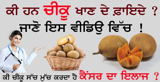 ਉਹਨਾਂ ਦੇ ਵਿੱਚੋਂ ਇੱਕ ਫਲ ਹੈ ਜੋ ਕੇ ਚੀਕੂ ਹੈ ਜਿਸ ਨੂੰ ਸੇ-ਵ-ਨ ਕਰਨ ਦੇ ਨਾਲ ਆਪਣੇ ਸਰੀਰ ਦੇ ਵਿਚ ਕਈ ਪ੍ਰਕਾਰ ਦੀਆਂ ਕ-ਮੀ-ਆਂ ਪੂਰੀਆਂ ਹੋ ਜਾਂਦੀਆਂ ਹਨ ਹੁਣ ਗੱਲ ਕਰਦੇ ਹਾਂ ਕਿ ਇਹ ਸਾਡੇ ਸਰੀਰ ਦੇ ਲਈ ਕਿਵੇਂ ਲਾ-ਹੇ-ਵੰ-ਦ ਹੁੰਦਾ ਹੈ ਇਸ ਵਿਚ ਵਿ-ਟਾ-ਮਿ-ਨ ਏ ਅਤੇ ਵਿ-ਟਾ-ਮਿ-ਨ ਬੀ ਬਹੁਤ ਭ-ਰ-ਪੂ-ਰ ਮਾਤਰਾ ਵਿੱਚ ਹੁੰਦੇ ਹਨ ਇਹ ਸਾਡੇ ਸਰੀਰ ਦੇ ਵਿੱਚ ਕੈਂ-ਸ-ਰ ਵਰਗੀਆਂ ਕੋ-ਸ਼ਿ-ਕਾ-ਵਾਂ