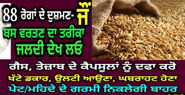 ਤੁਹਾਡੇ ਵਾਲਾਂ ਨਾਲ ਜੁੜੀਆਂ ਅੱਖ ਨਾਲ ਜੁੜੀਆਂ ਜਾਂ ਫਿਰ ਚਮੜੀ ਨਾਲ ਜੁੜੀਆਂ ਸਾਰੀਆਂ ਸਮੱਸਿਆਵਾਂ ਦੂਰ ਹੋ ਜਾਣਗੀਆਂ। ਜੌਂ ਤੁਹਾਡੀਆਂ ਬਹੁਤ ਸਾਰੀਆਂ ਬਿਮਾਰੀਆਂ ਨੂੰ ਖਤਮ ਕਰੇਗਾ। ਇਸ ਦਾ ਸੇਵਨ ਕਰਨ ਨਾਲ ਤੁਹਾਨੂੰ ਬਹੁਤ ਫਾਇਦਾ ਮਿਲੇਗਾ,ਸਾਡੇ ਦੁਆਰਾ ਦਿੱਤੀ ਗਈ ਜਾਣਕਾਰੀ ਅਖ਼ਬਾਰ,ਨਿਊਜ ਚੈਨਲ,ਯੂ-ਟਿਊਬ ਆਦਿ ਤੋਂ ਲਈ ਜਾਂਦੀ ਹੈ ਤੇ ਤੁਹਾਡੇ ਤੱਕ ਪਹੁੰਚਾਈ ਜਾਂਦੀ ਹੈ ਤਾਂ ਜੋ ਤੁਹਾਨੂੰ ਸਾਡੇ ਦੁਆਰਾ ਦਿੱਤੀ ਗਈ ਜਾਣਕਾਰੀ ਦਾ ਵੱਧ ਤੋਂ ਵੱਧ ਫਾਇਦਾ ਹੋ